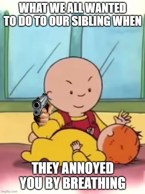 Caillou Meme Gun. Dont you dare shoot rosie again. Caillou's cancellation trended under the “politics” category on twitter. X gets grounded refers to a series of videos made using goanimate, where someone gets caught doing bad or illegal things and gets grounded by his/her . Henry kills caillou with a 9mm gun. The worst prank caller ever.